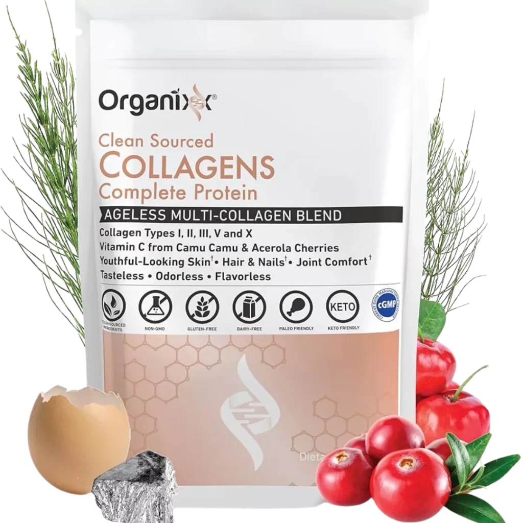 Organixx Collagen Protein is a clean, real-food collagen made with five types of collagen to support healthy skin, hair, joints, and gut health. Odorless, tasteless, and easy to mix, it delivers high-quality protein per serving while supporting strength, mobility, and overall wellness—without fillers or artificial ingredients.